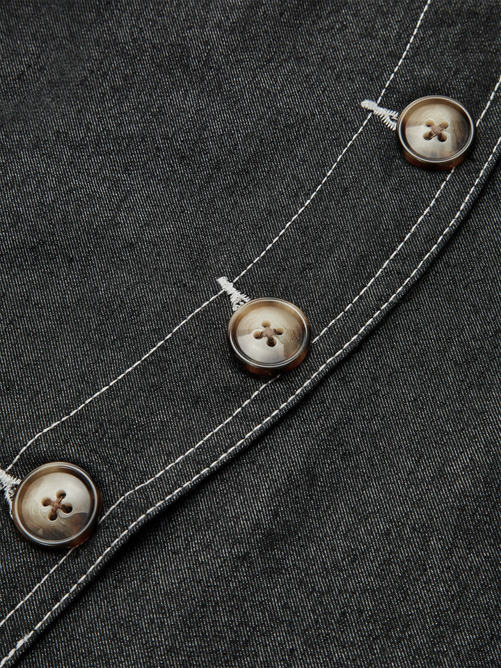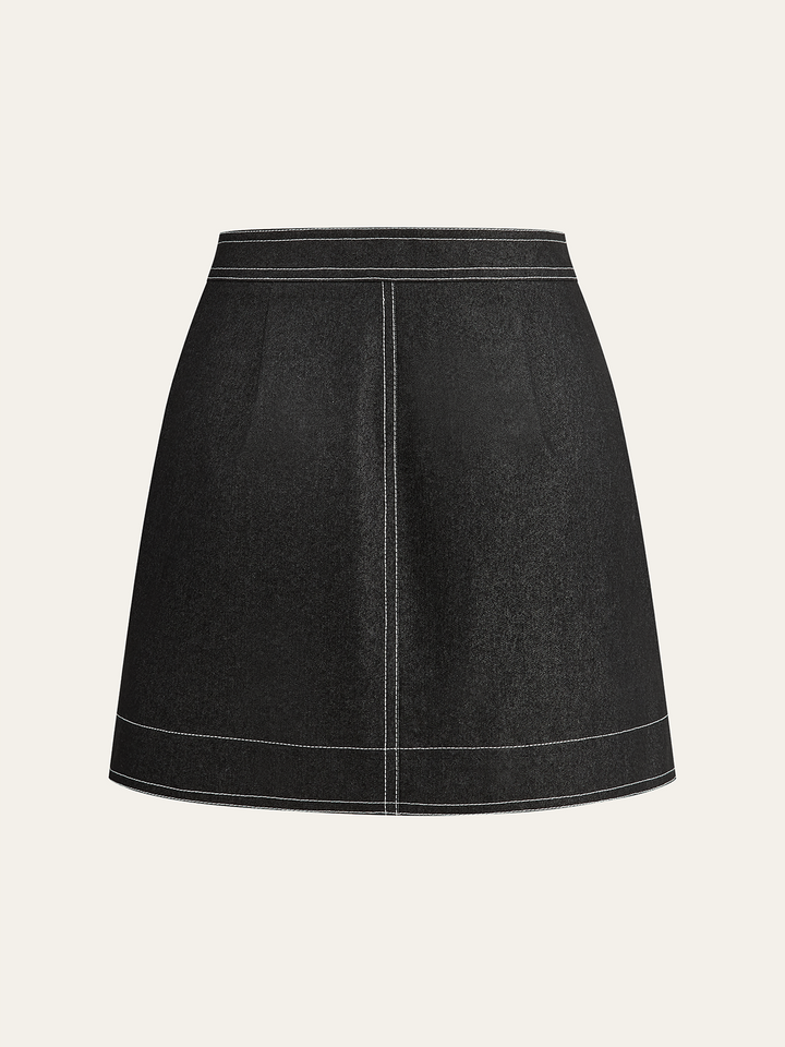 Asymmetric Button-Front Pocket Mini Skirt