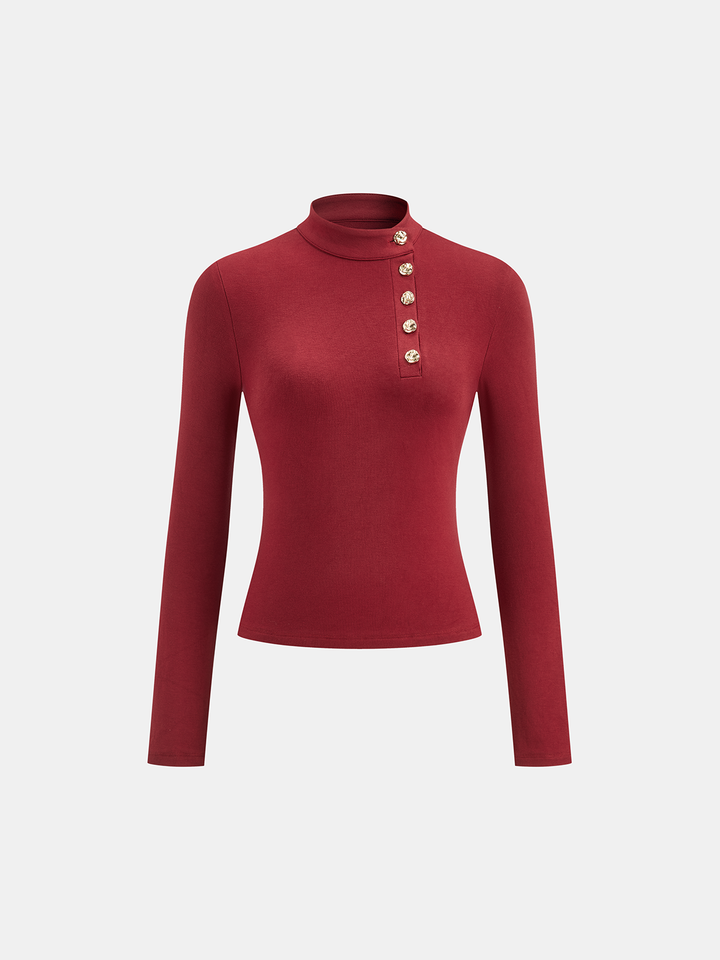 Asymmetric Placket Stand Collar Long Sleeve Blouse