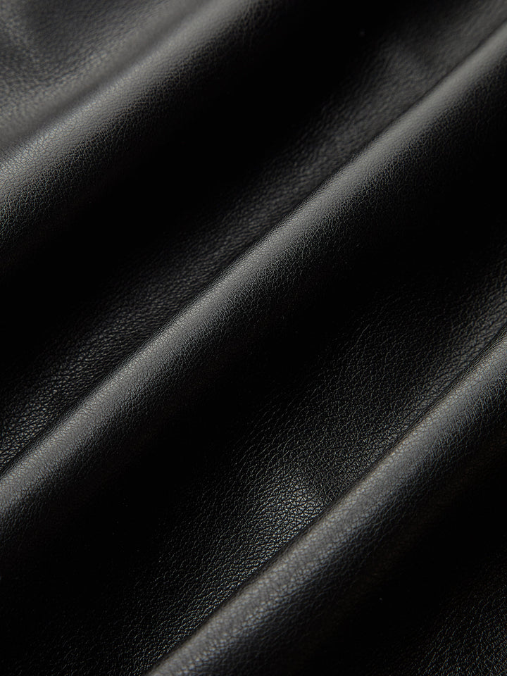 Asymmetric PU Leather Panel Blouse