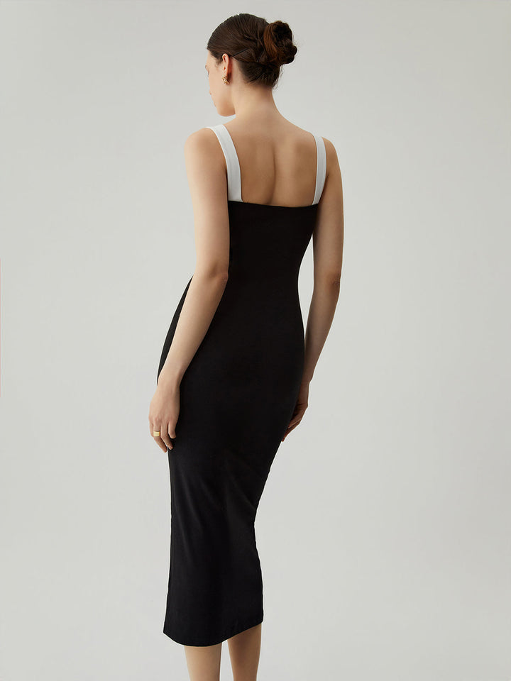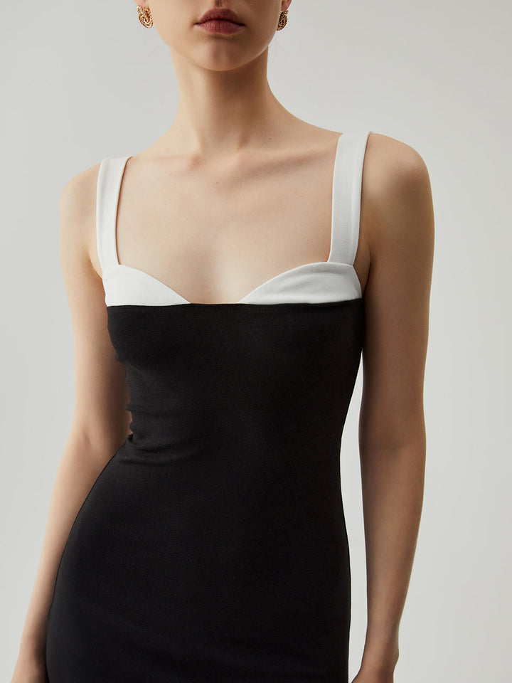 Bodycon Patchwork Sweetheart Collar Cami Midi Dress