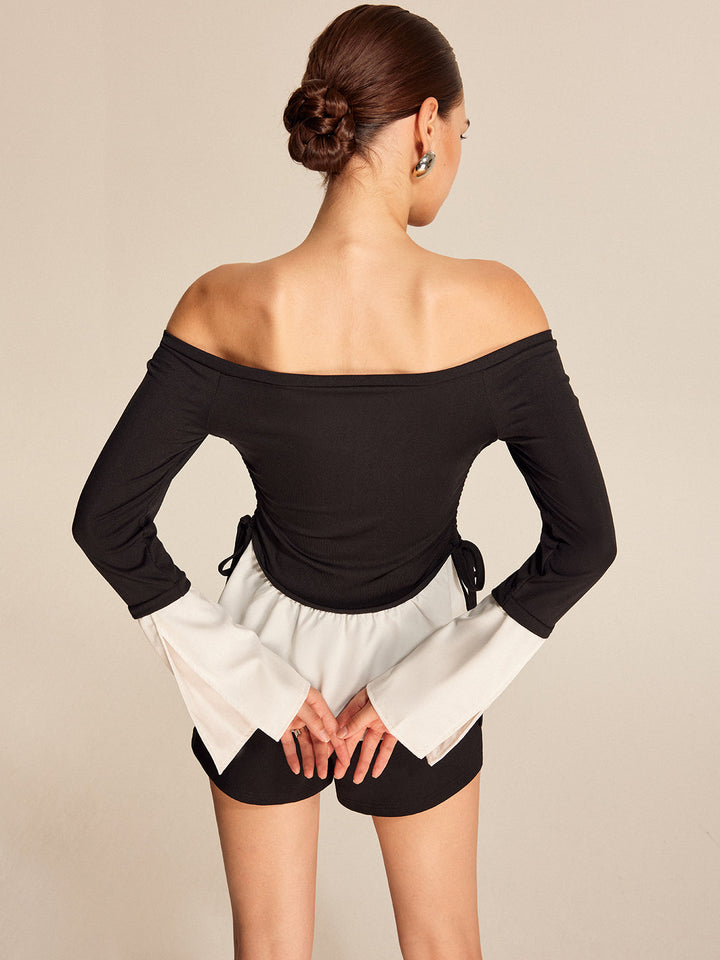 Bold Contrast Off-Shoulder Straight Neck Blouse