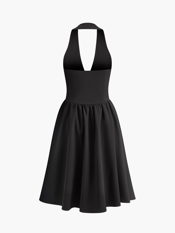 Bow-Decor Cutout Pleated Halter Short Dress