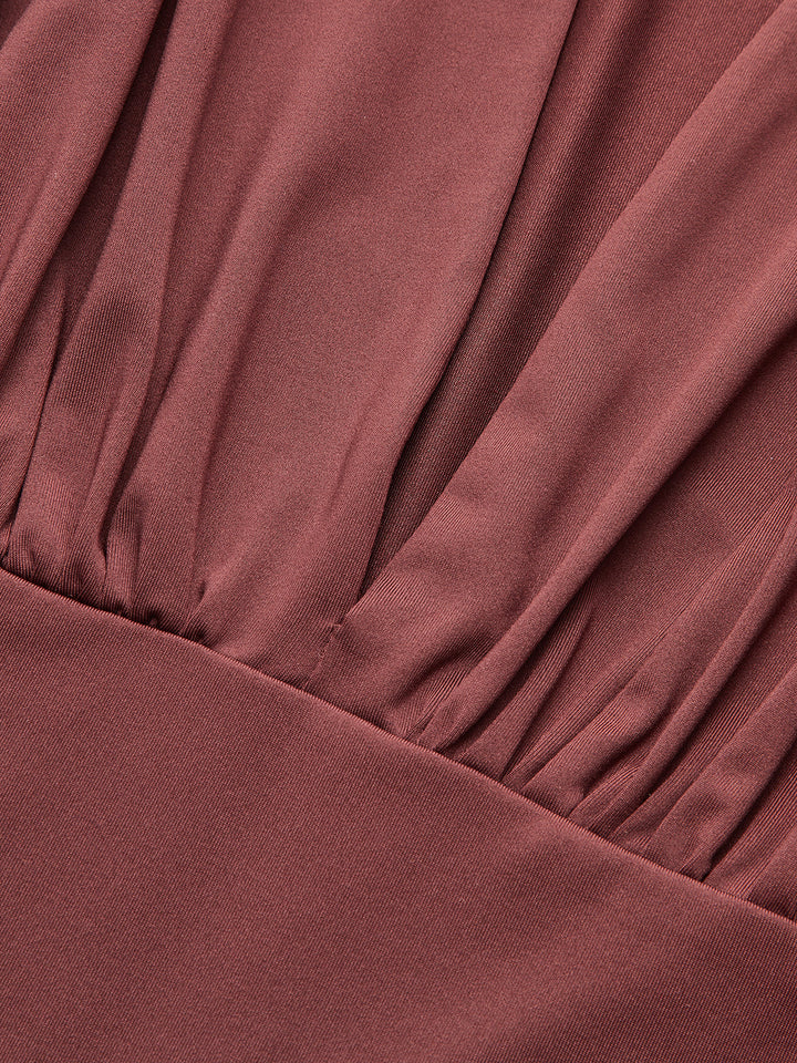 Boxy Shoulder Draped Plunging Neckline Bodysuit