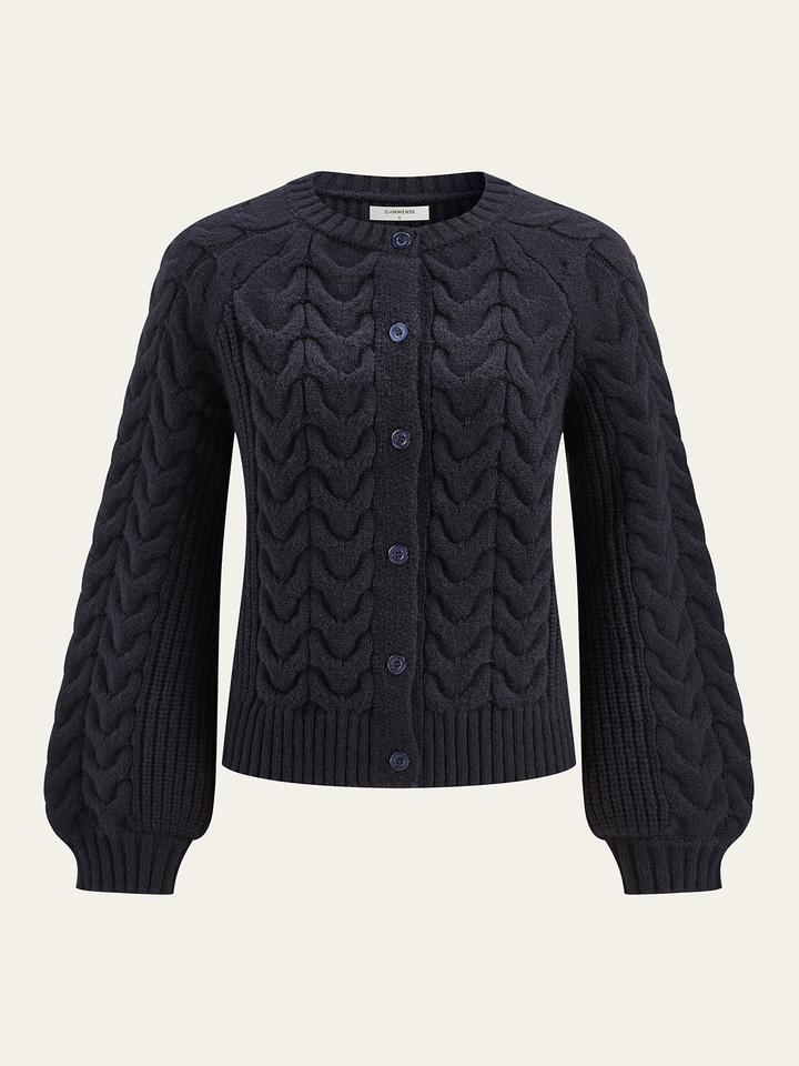 Cable Knit Balloon Sleeve Cardigan