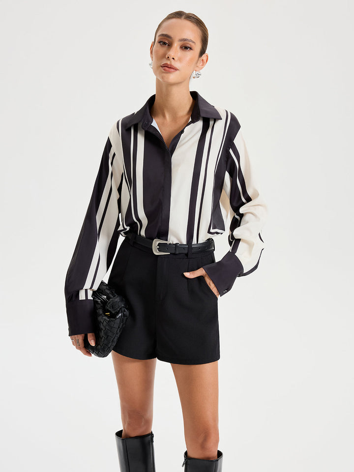 Contrast Striped Lapel Collar Shirt