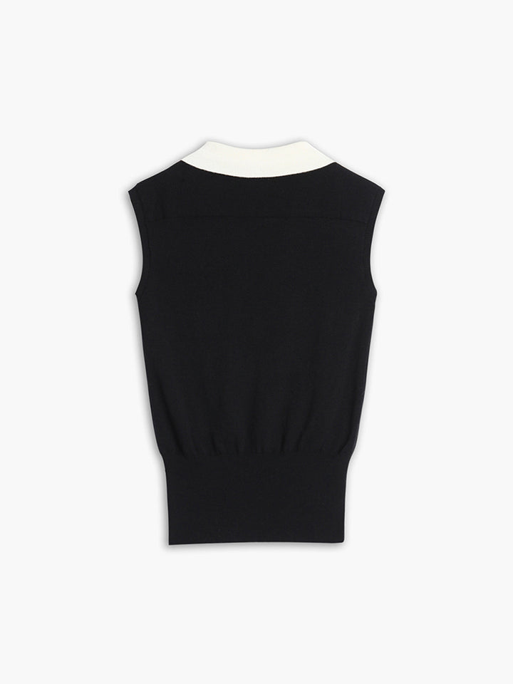 Contrast Trim Collar V-neck Knit Sweater Vest