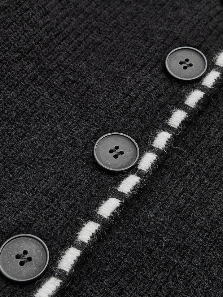 Contrast Trim Lapel Cardigan