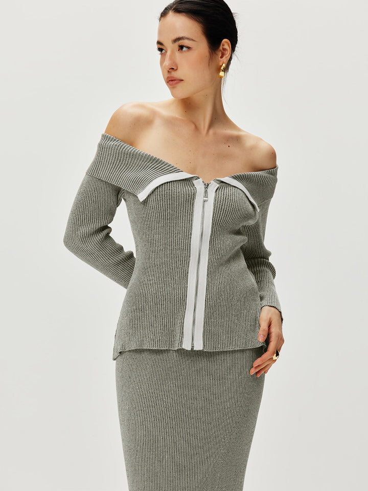 Contrast Trim Off Shoulder Cardigan