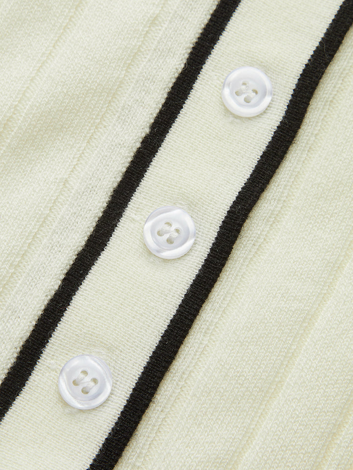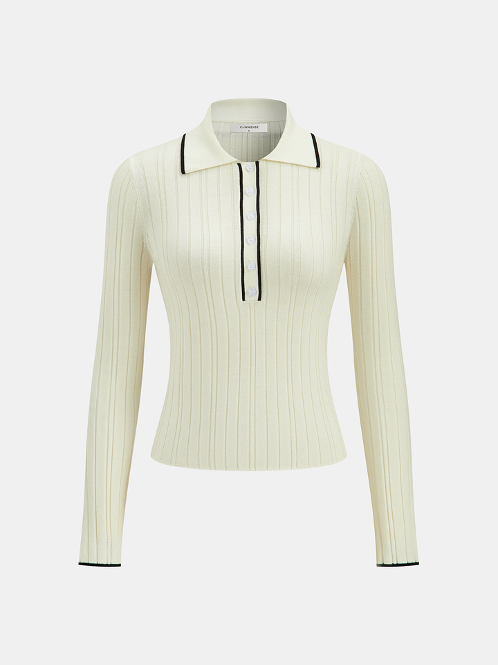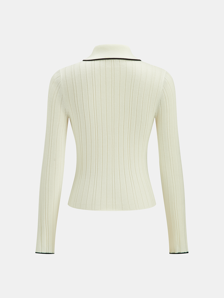 Contrast Trim Wool Blend Polo Neck Sweater