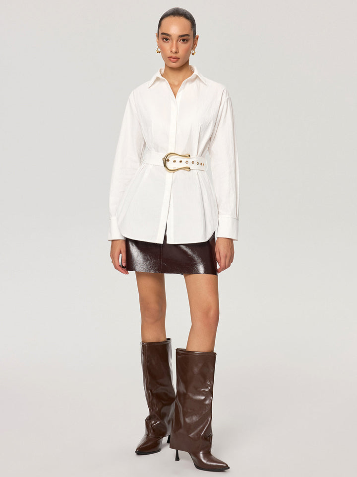 Cotton Blend Shirt with Metal Buckle Belt