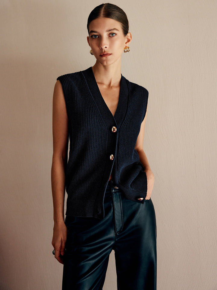 Cotton Blends Ribbed Sweater Vest