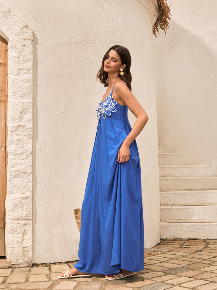 Cotton & Linen Floral Detail Cami Dress With Pockets