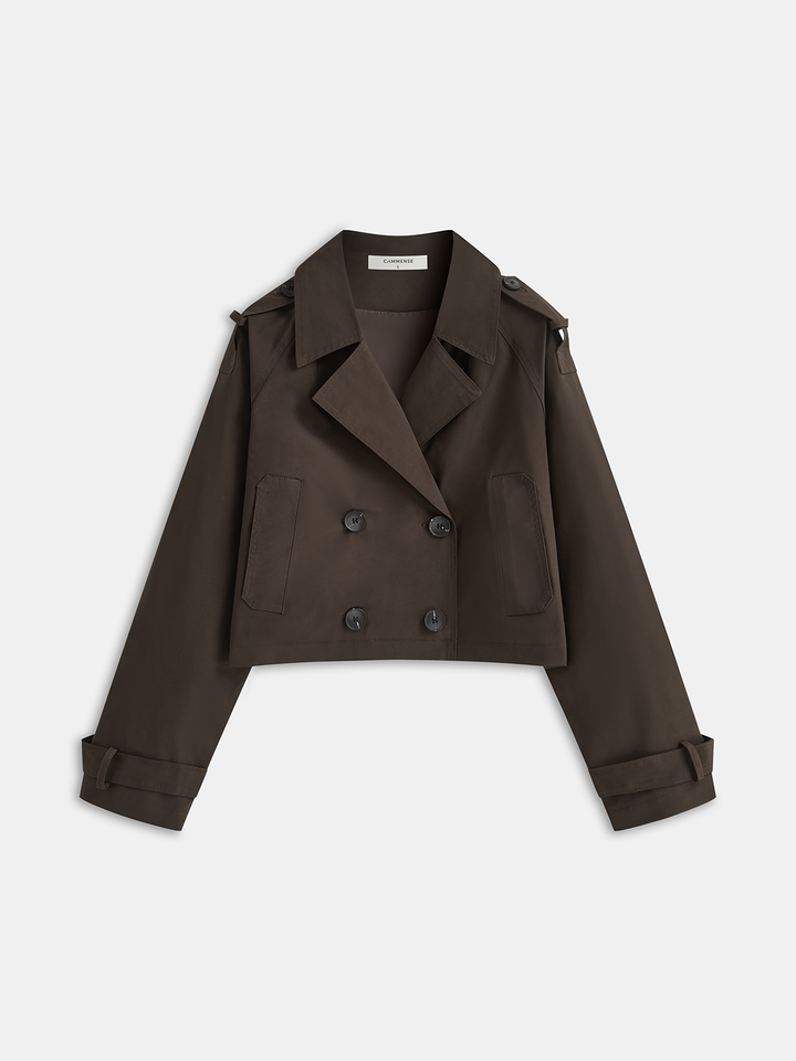 Double-Button Cropped Trench Coat