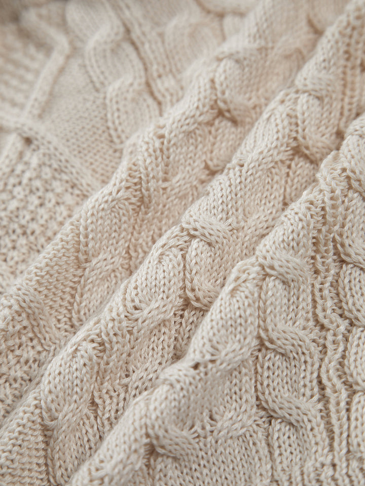 Drawstring Open Back Cable Knit Halter Crop Top