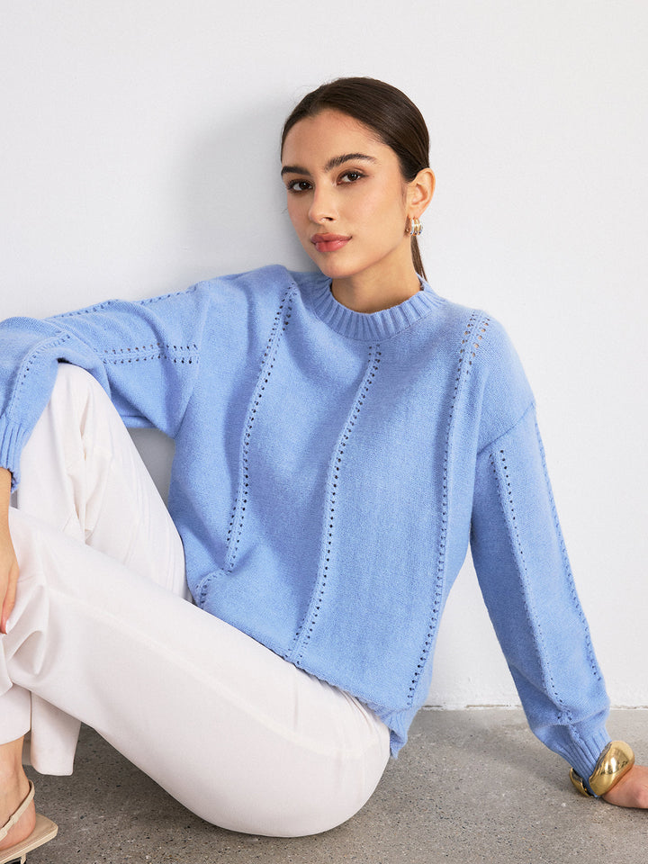 Eyelet Detail Crew Neck Sweater