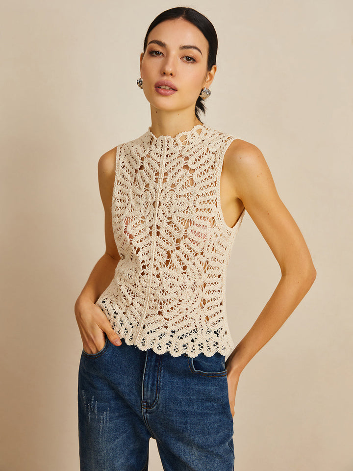Floral Crochet Hollow Out Sweater Vest