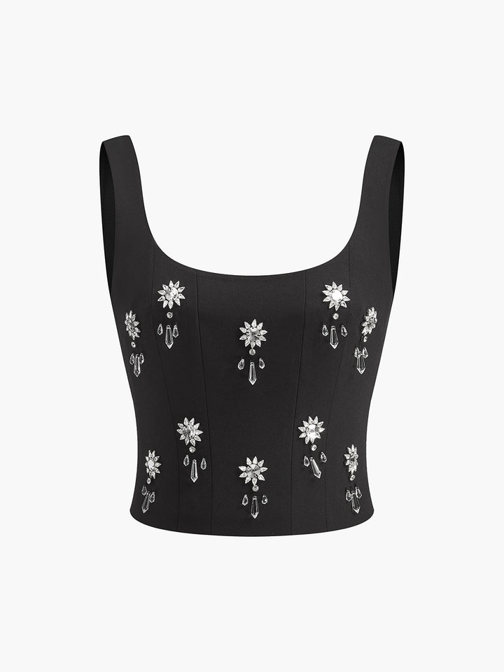 Floral Crystal Back Zipper Top