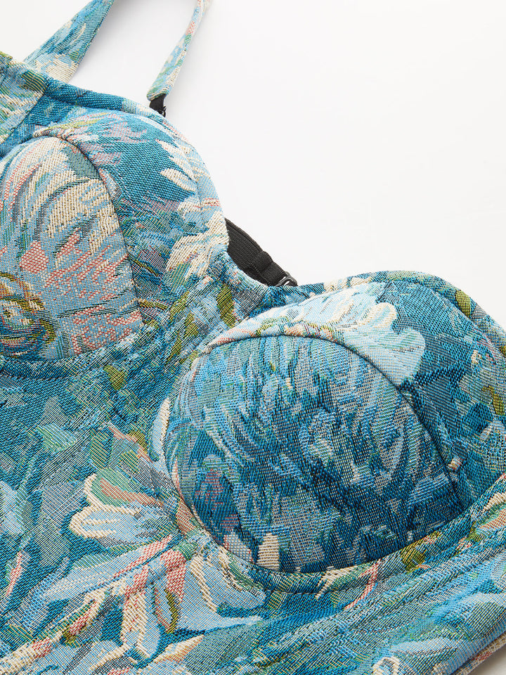 Floral Jacquard Corset Top