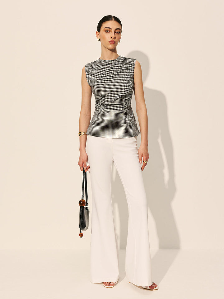 Gingham Ruched Sleeveless Top