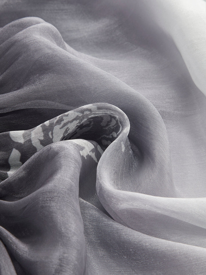 Semi-Sheer Gradient Floral Off-Shoulder Chiffon Top