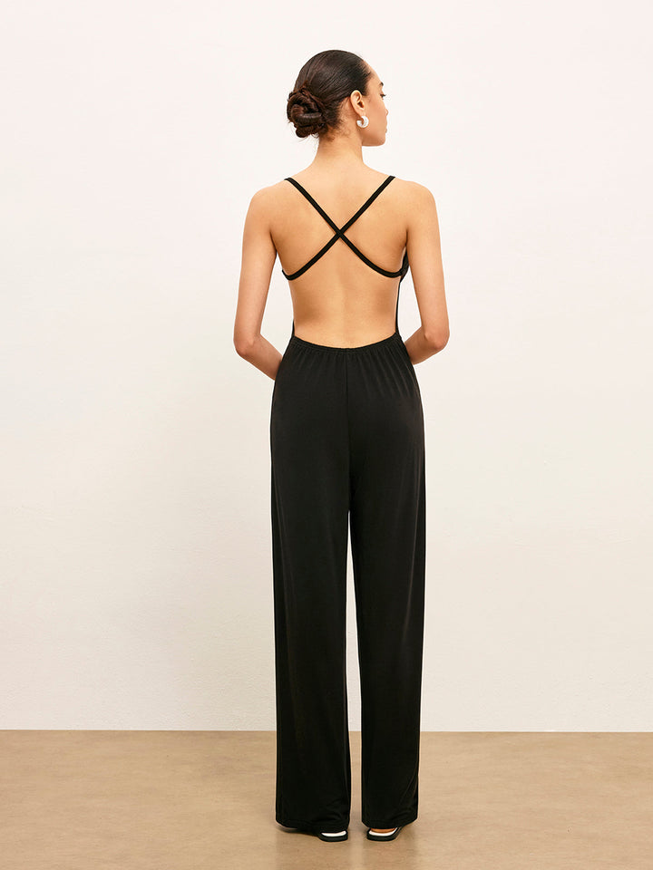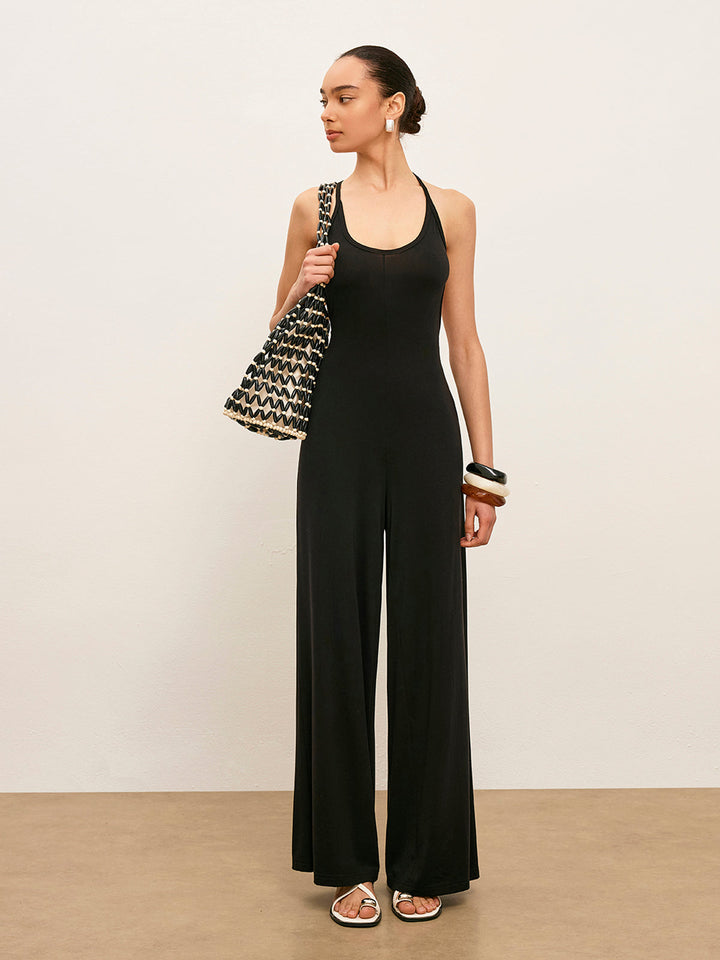Knit Backless Sleeveless Scoop Neck Jumpsuit