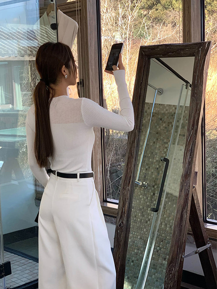 Knit Ribbed Crew Neck Asymmetric Top