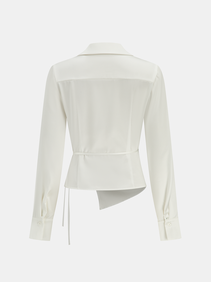 Lapel Collar Tie Satin Wrap Shirt