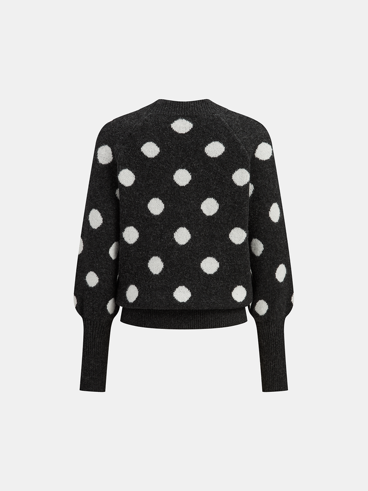 Leg-Of-Mutton Sleeve Polka Dot Wool Blend Sweater