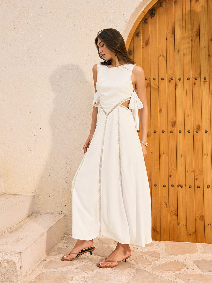 Linen & Cotton Cut-Out Tie-Back Maxi Dress
