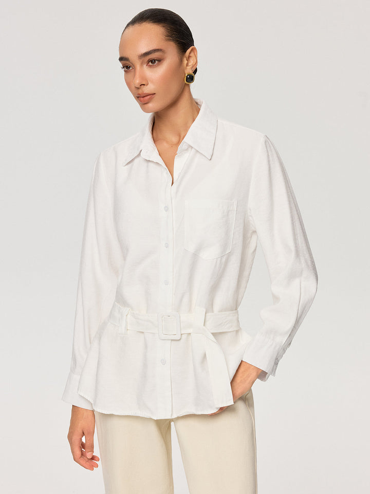 Long Sleeve Belted Cotton Shirt