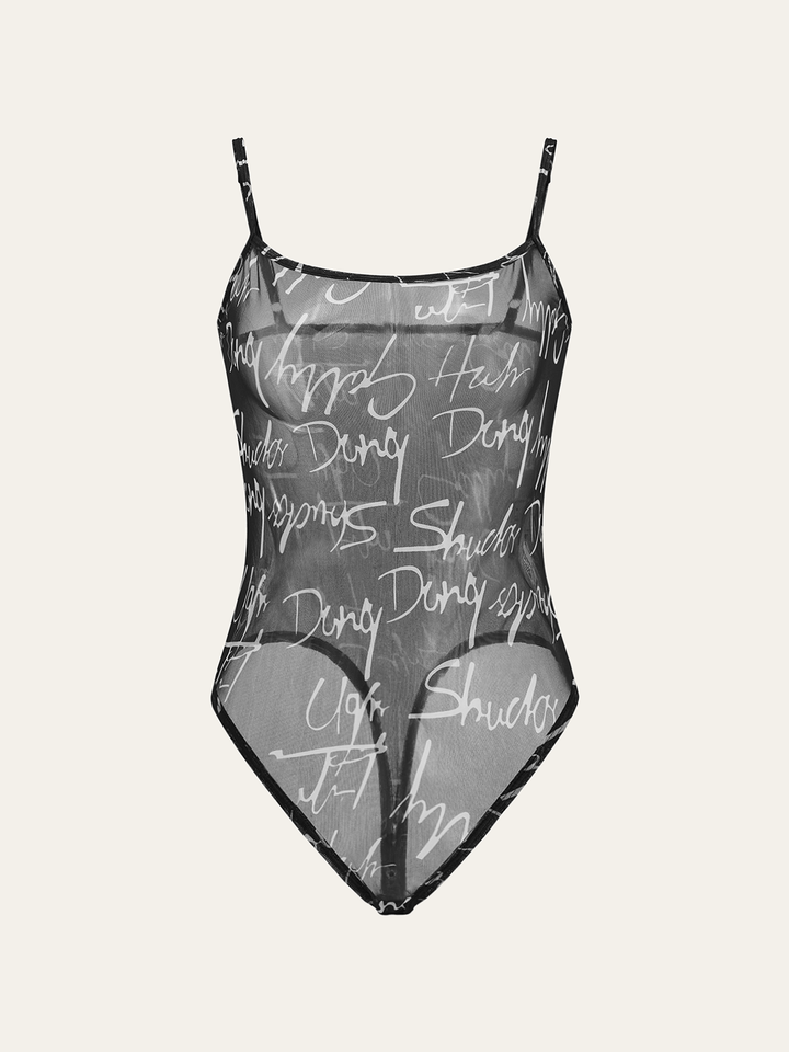 Sheer Meltaway Tank Top Scripted Bodysuit