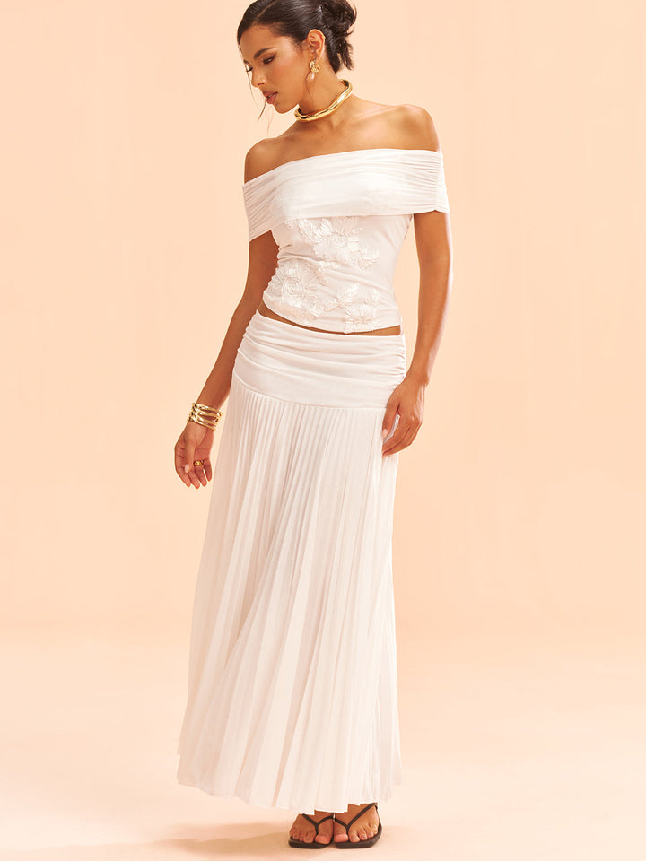 Mesh Off-Shoulder Floral Applique Blouse