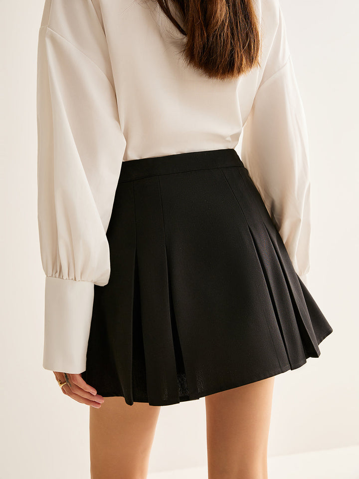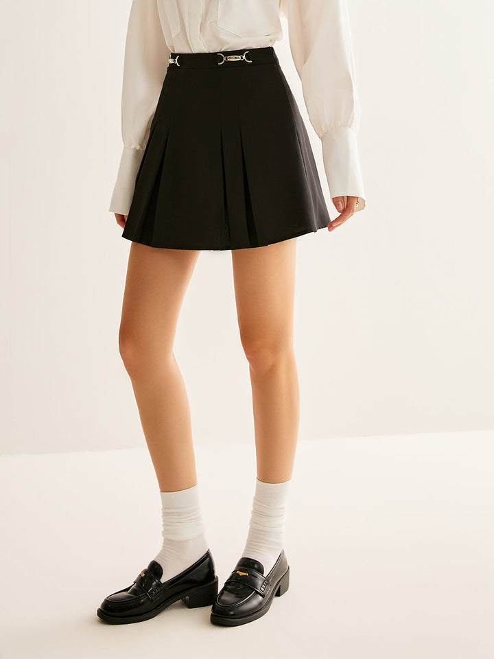 Metal-Belt Pleated Mini Skirt