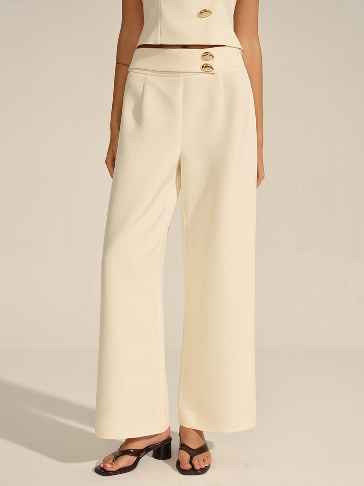 Metal Decor Mid-Waist Pants
