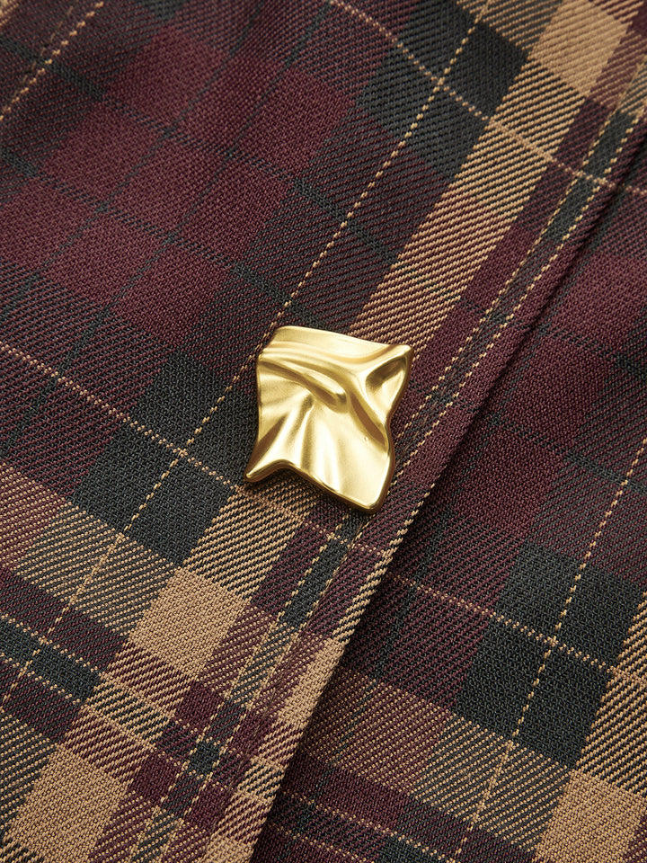 Metal Detail Plaid Sleeveless Pleated Mini Dress