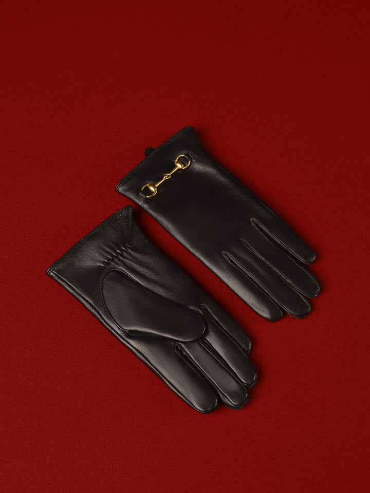 Metal Detail Sheepskin Fleecing Gloves