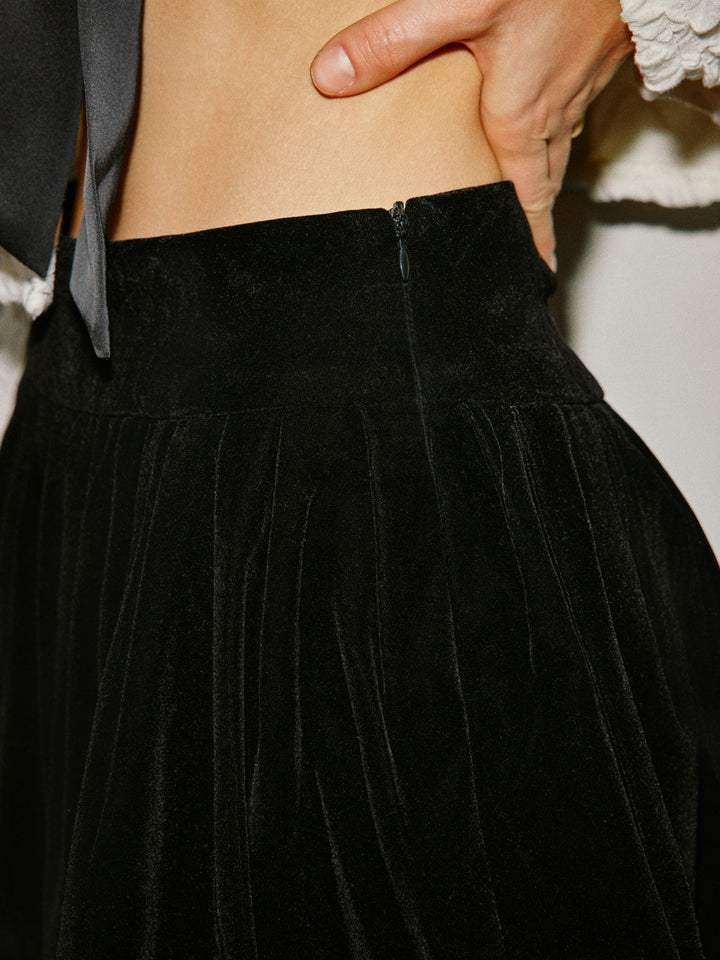 Mid-Waist Umbrella Shape Pleated Skirt
