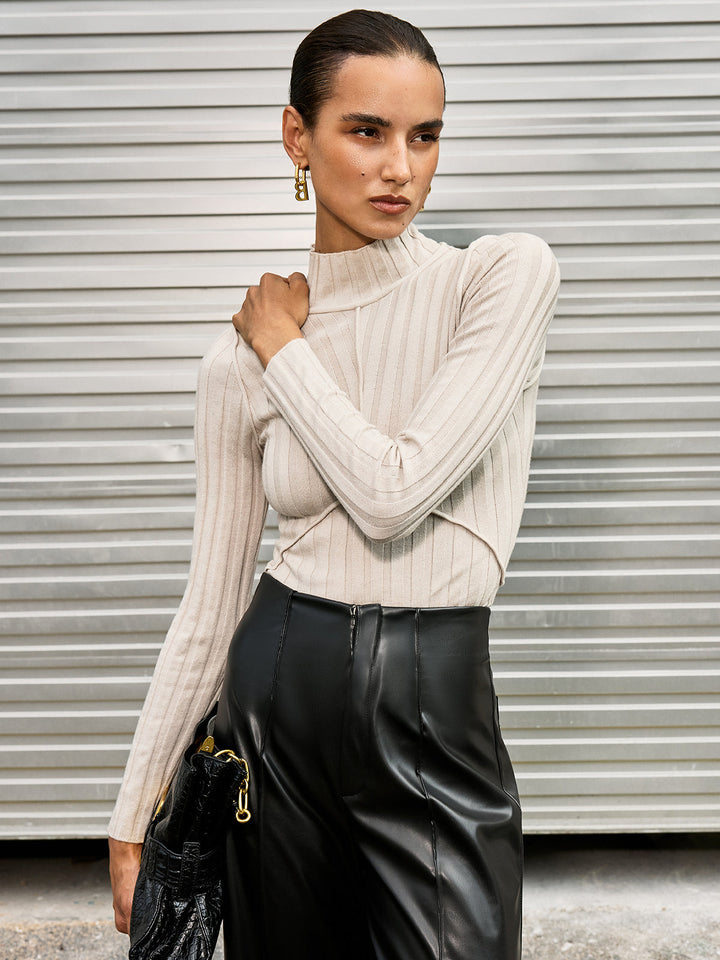 Mock Neck Seamed Sweater