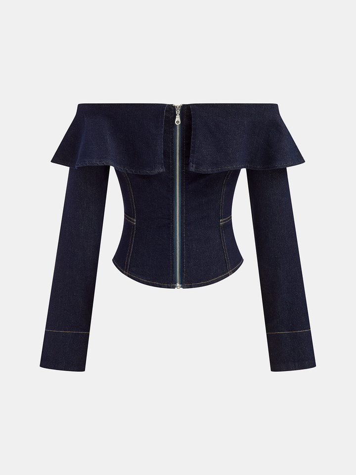 Off-Shoulder Ruffle Collar Denim Top