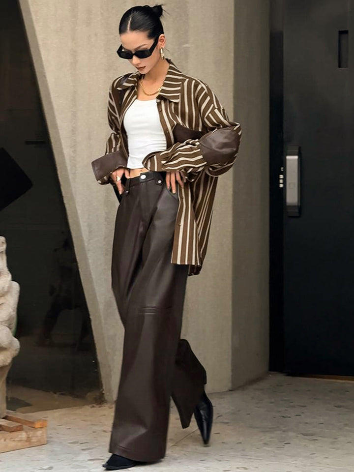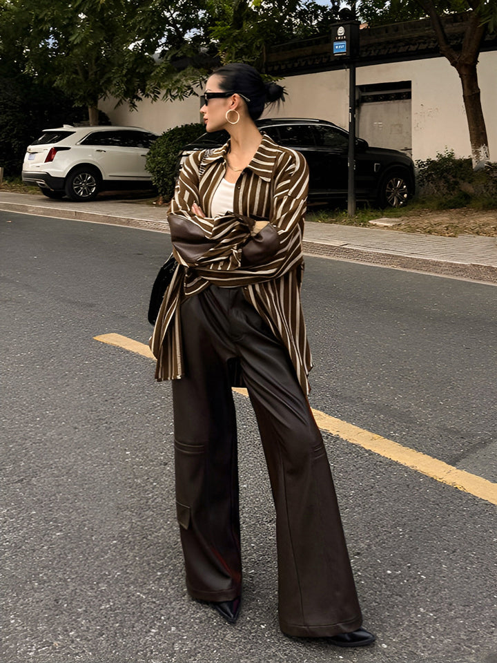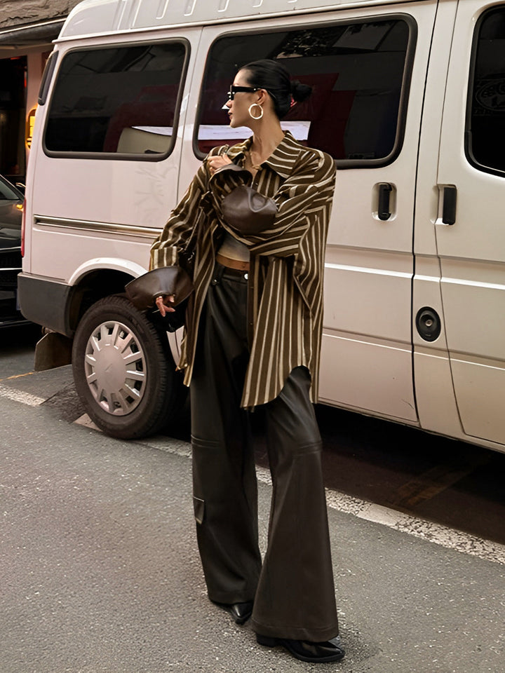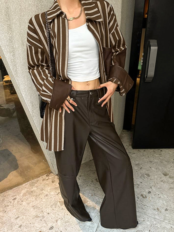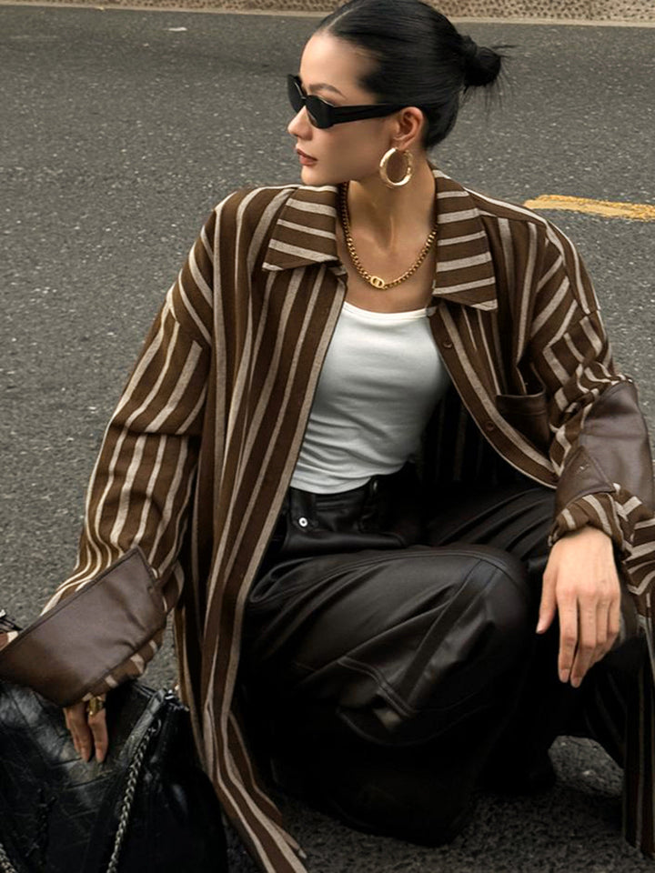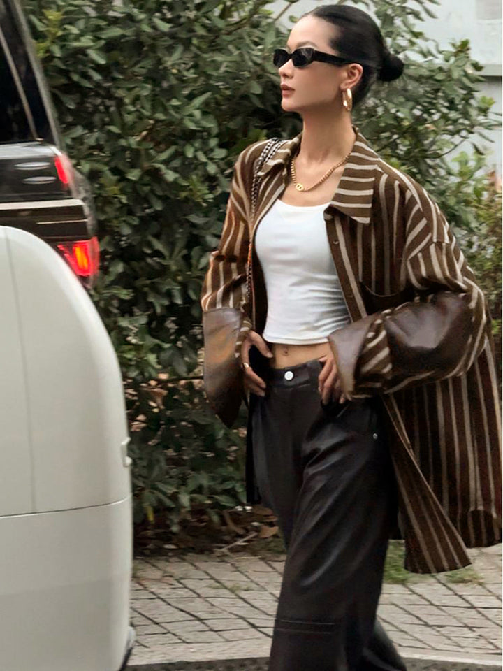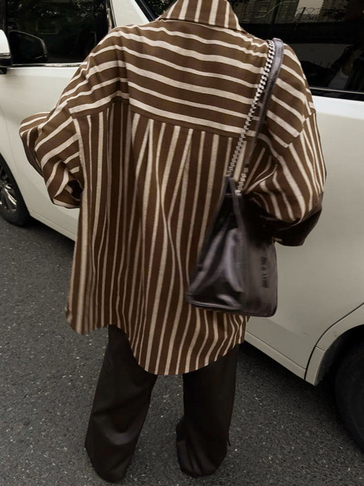 Oversized Cotton Panel Pinstripe Polo Shirt