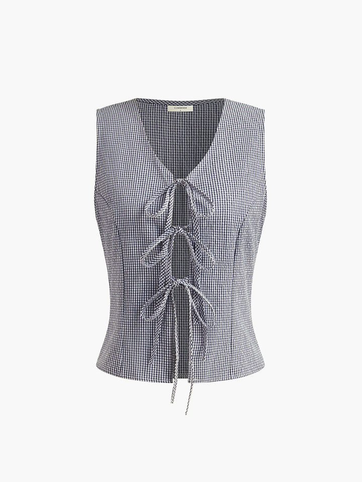 Plaid Knotted V-Neck Vest