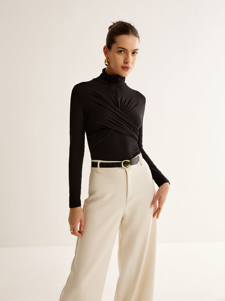 Plain Criss Cross Pleated T-Shirt