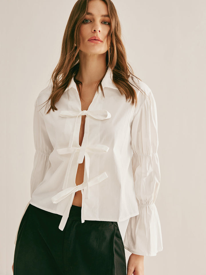 Pleated Tie Front Polo Shirt