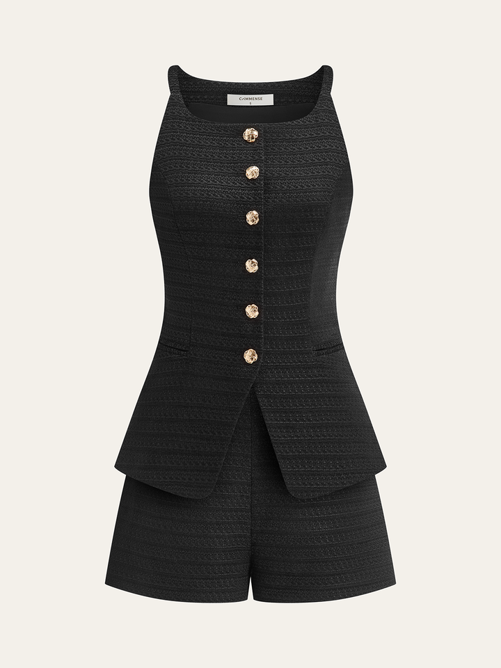 Pocketed Tweed Metal Button Shorts Set