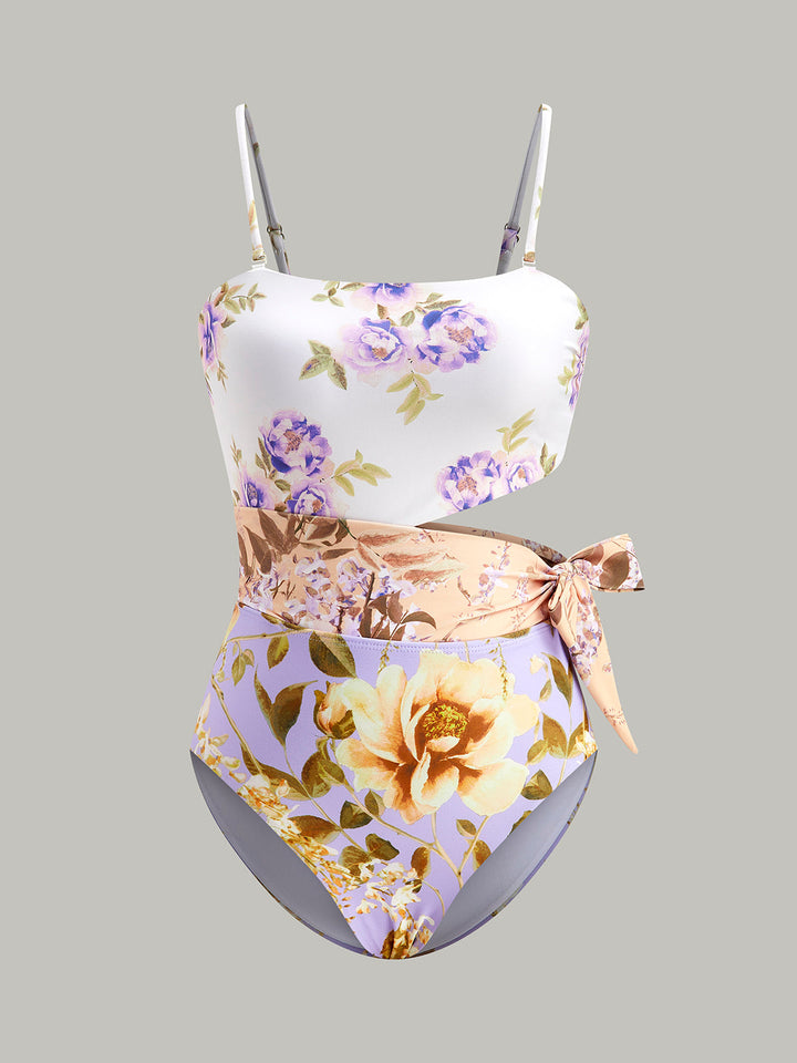 Print Cut-Out Bow Spaghetti Strap One-Piece Swimsuit