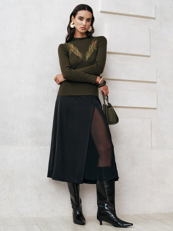 Sheer Slit Midi Skirt without Belt