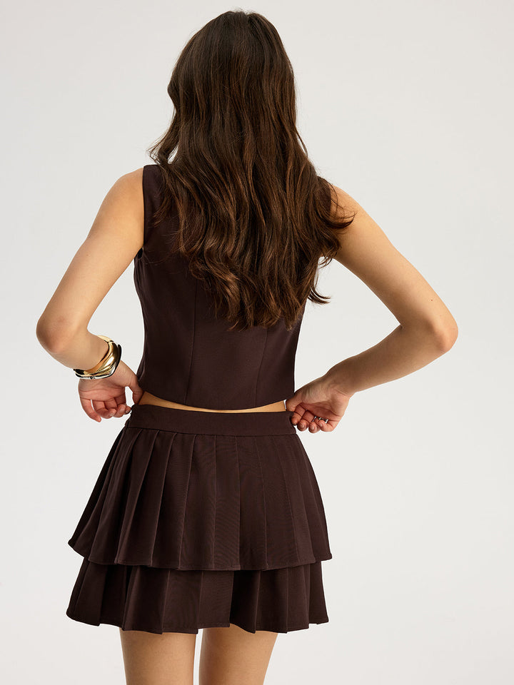 Sleeveless Crop Top and Tiered Mini Skirt Set