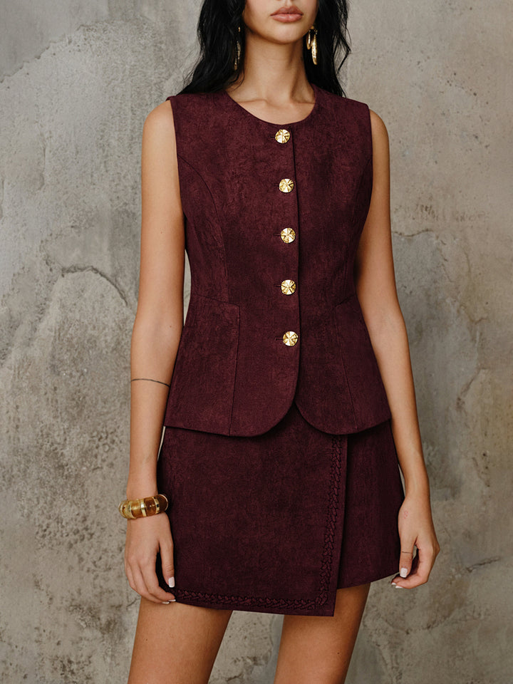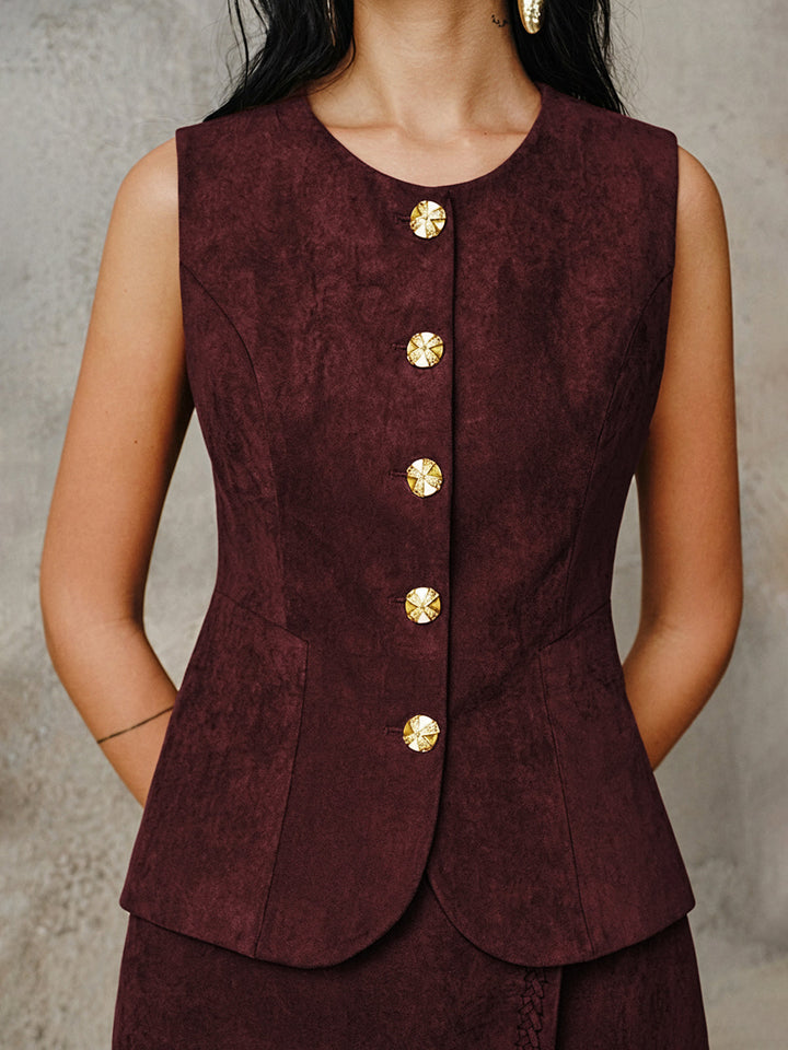Suede Metal Button Vest
