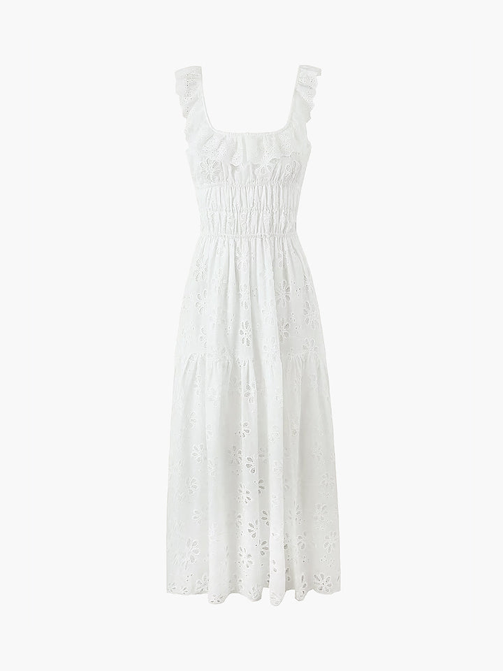 Sundrenched Cotton Eyelet Embroidered Long Dress