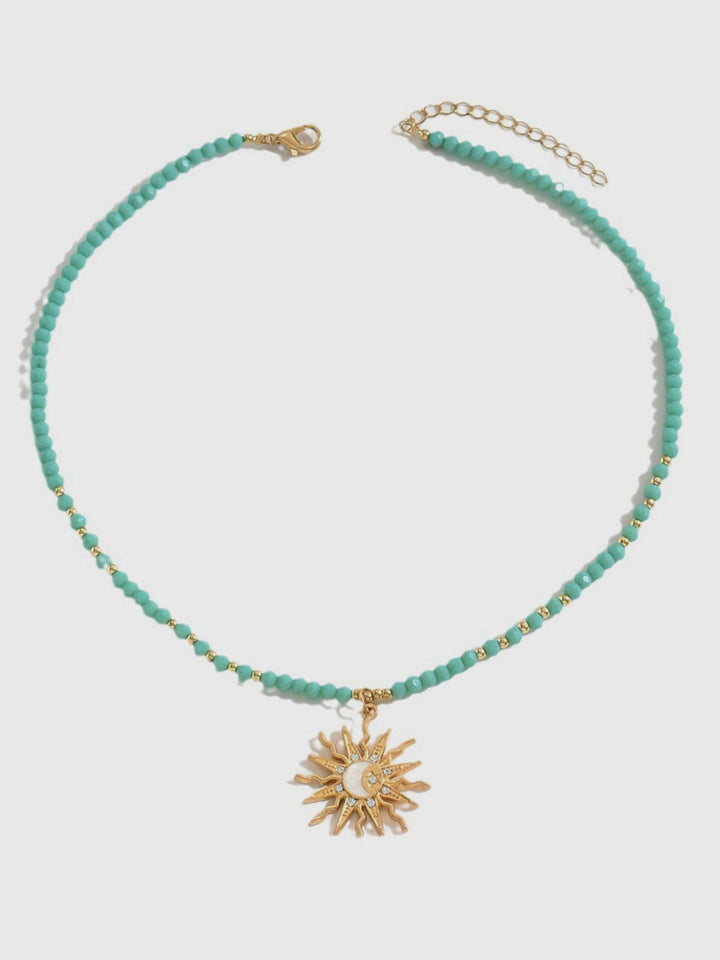 Turquoise Beaded Choker with Sun-Moon Pendant